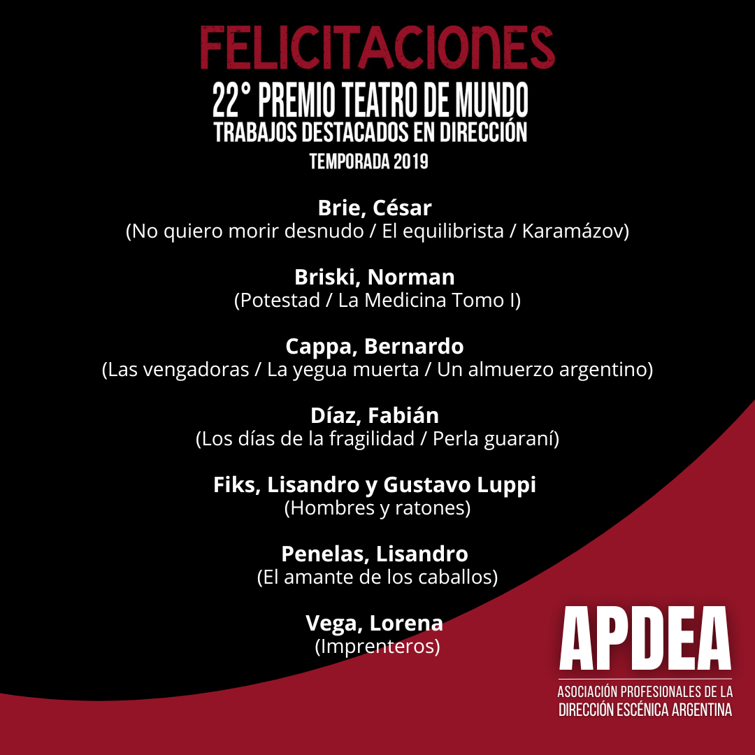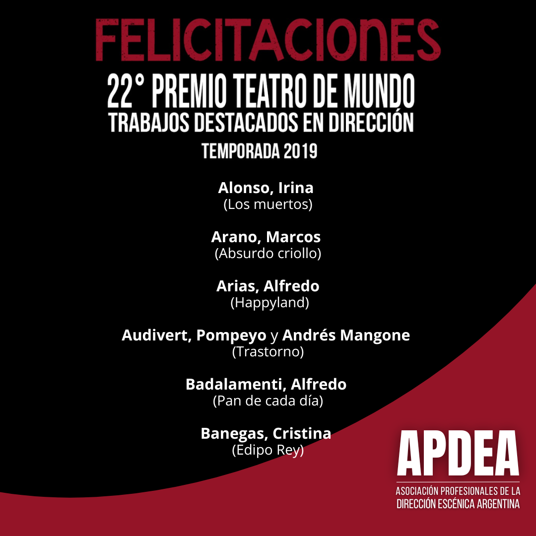 Felicitamos a las y los profesionales de la dirección escénica destacados por sus trabajos en dirección en la temporada 2019.